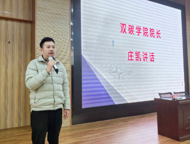 庄凯在代表学院致辞中,首先对协会长期以来给予我院的重视、支持表示诚挚感谢,随后结合国家“双碳”目标深入推进的时代背景,点明环保行业作为绿色发展核心领域,阐述了双方深度合作的人才需求与广阔发展前景。鼓励全体同学把握此次机会,扎实筑牢专业根基,主动提升综合职业素养,明确职业发展方向,为未来从容步入环保行业做好充分准备。