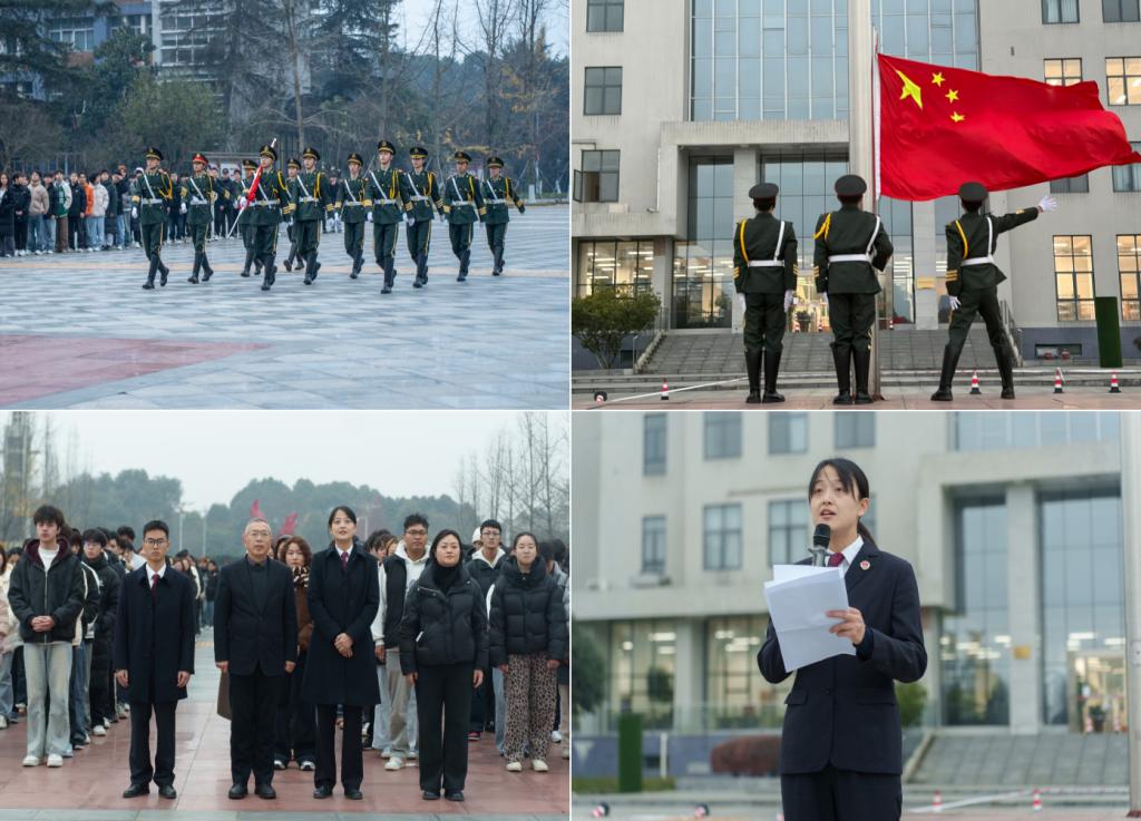 为深入学习贯彻习近平法治思想,弘扬宪法精神,在第十二个国家宪法日来临之际,12月8日,我院在厚德广场隆重举行升旗仪式暨“学宪法 讲宪法”主题教育活动。本次活动由学院法规处主办,都江堰市人民检察院协办,双碳学院承办。学院党委副书记、院长邓春生,都江堰市人民检察院党组成员、政治部主任刘静怡,检察官张顺,双碳学院党总支书记梁胜,学生党支部书记杨涛,法规处干事杨娟参加,我院大一、大二学生代表共计700余人共同参与。活动由双碳学院学生干部赵思涵主持。