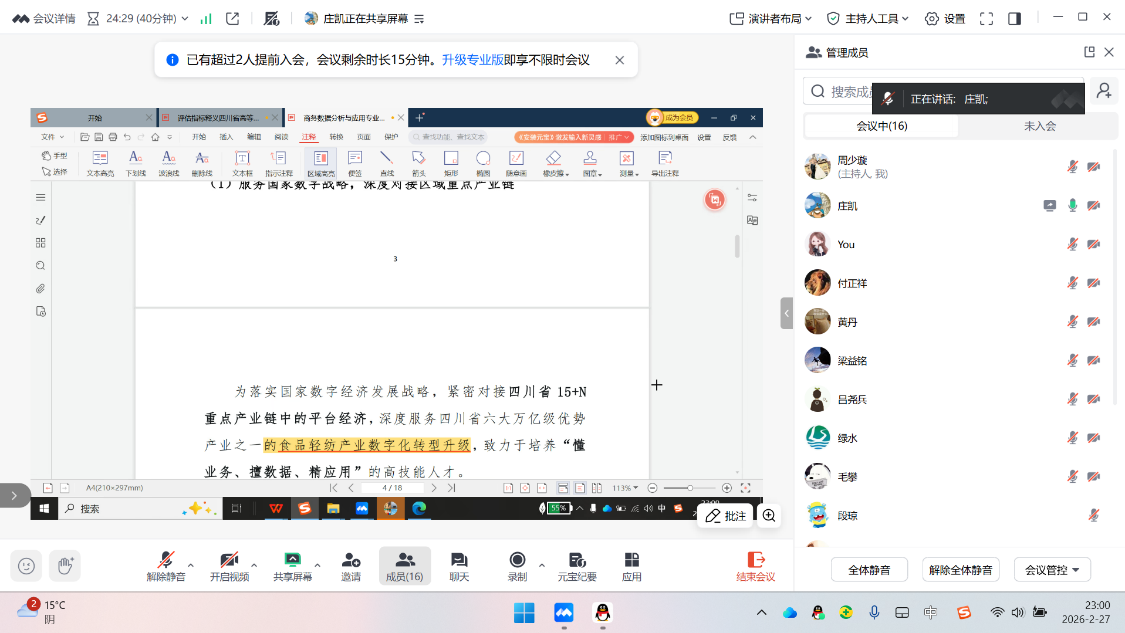结合学校整改要求与首次研讨会的研讨意见,学院对后续工作进行周密部署。要求各专业抢抓时间节点,在两天内完成报告的优化打磨工作;3月1日晚,学院组织开展各专业剖析报告内部线上评审,完成首轮集中审核;3 月 4 日,学院再次召开线下评审会,对各专业剖析报告进行进一步打磨提升。